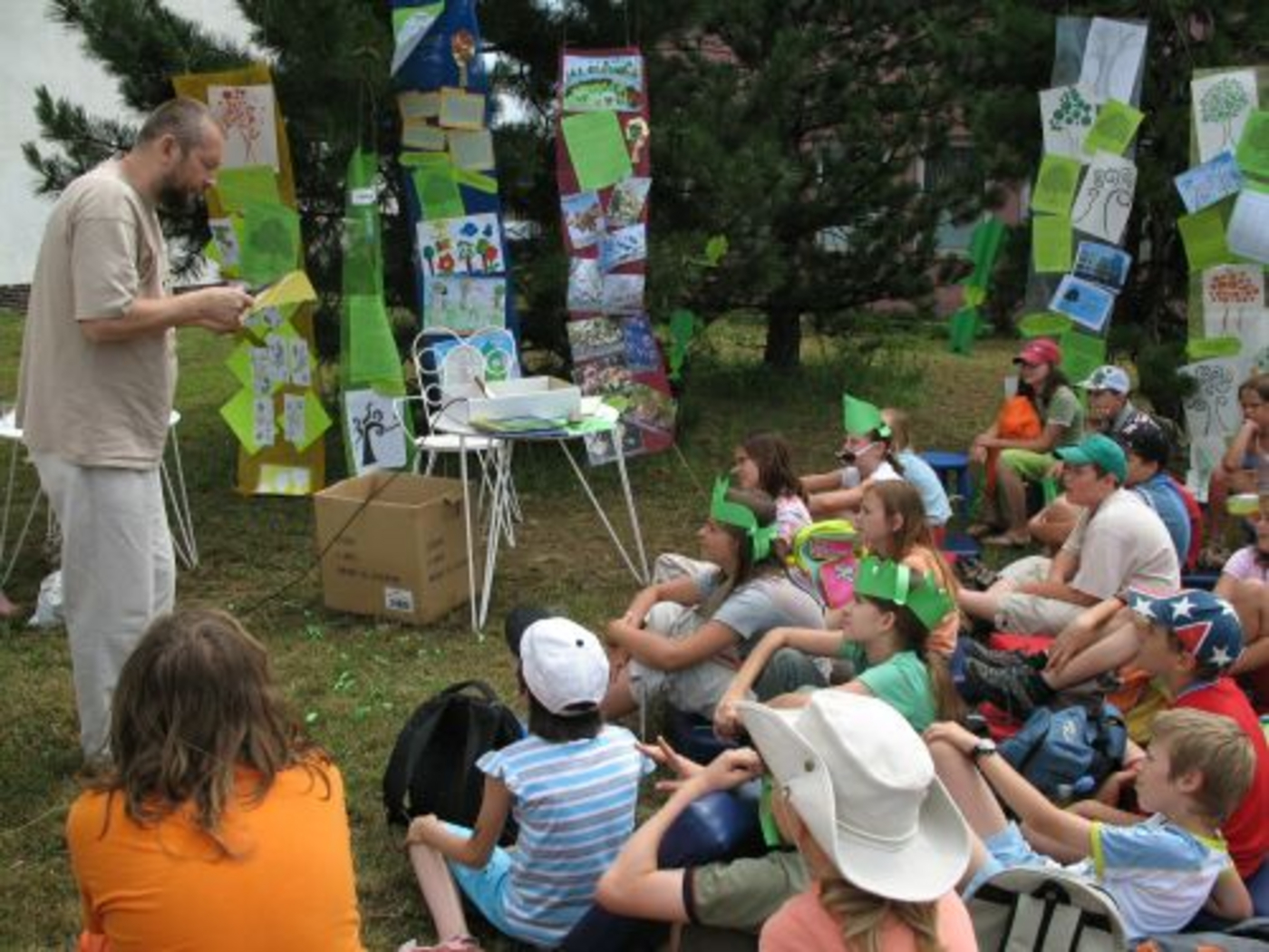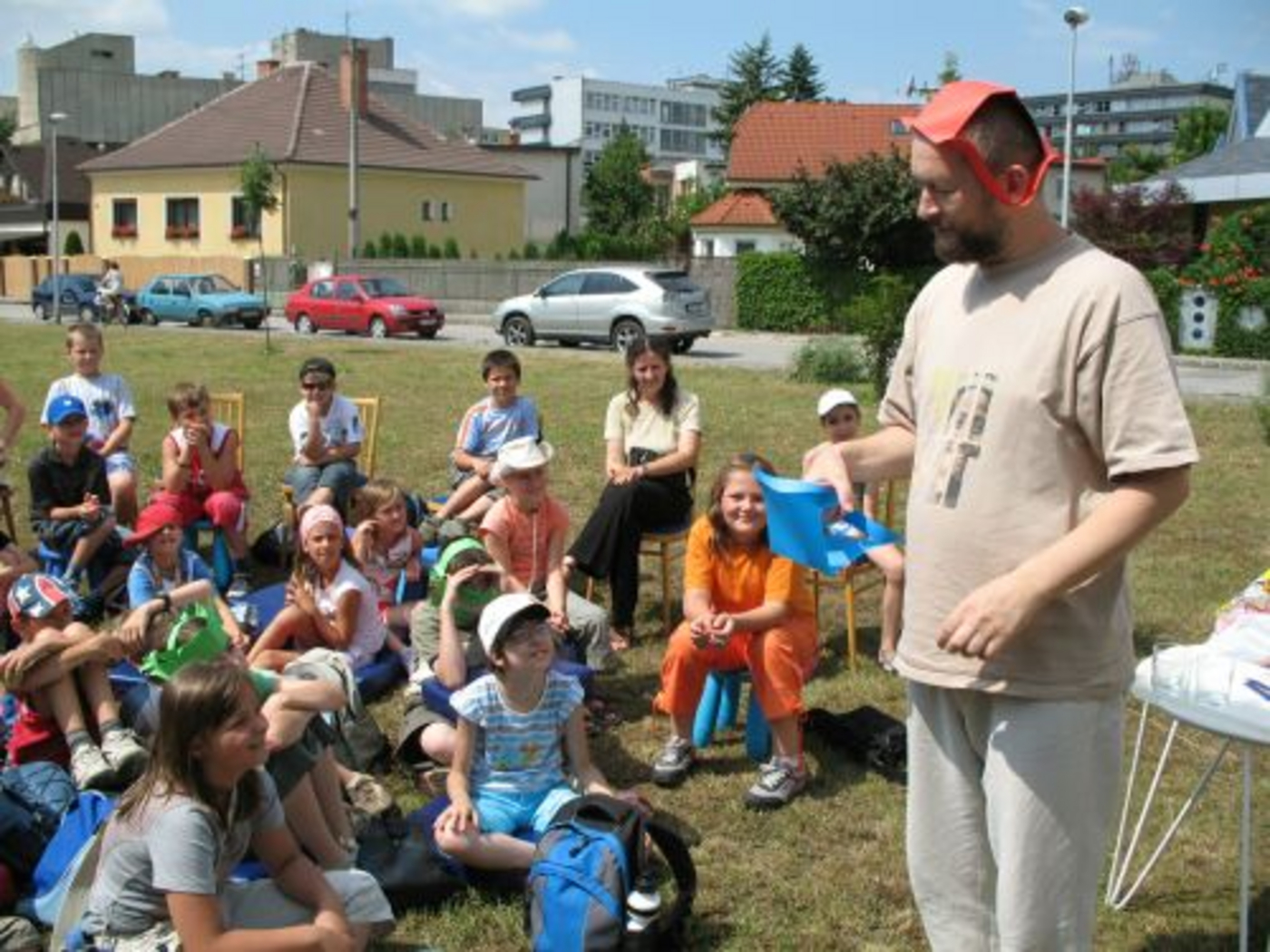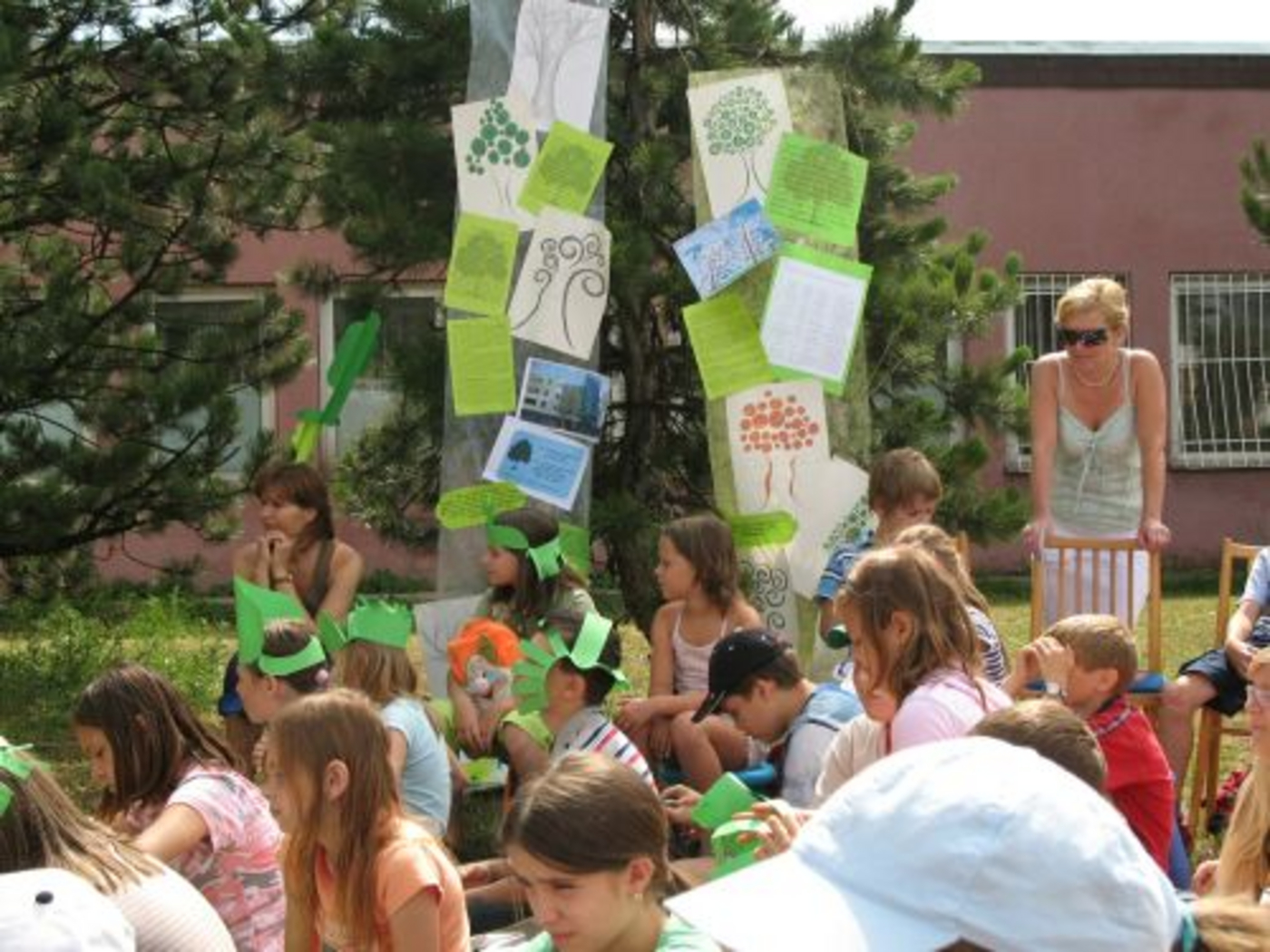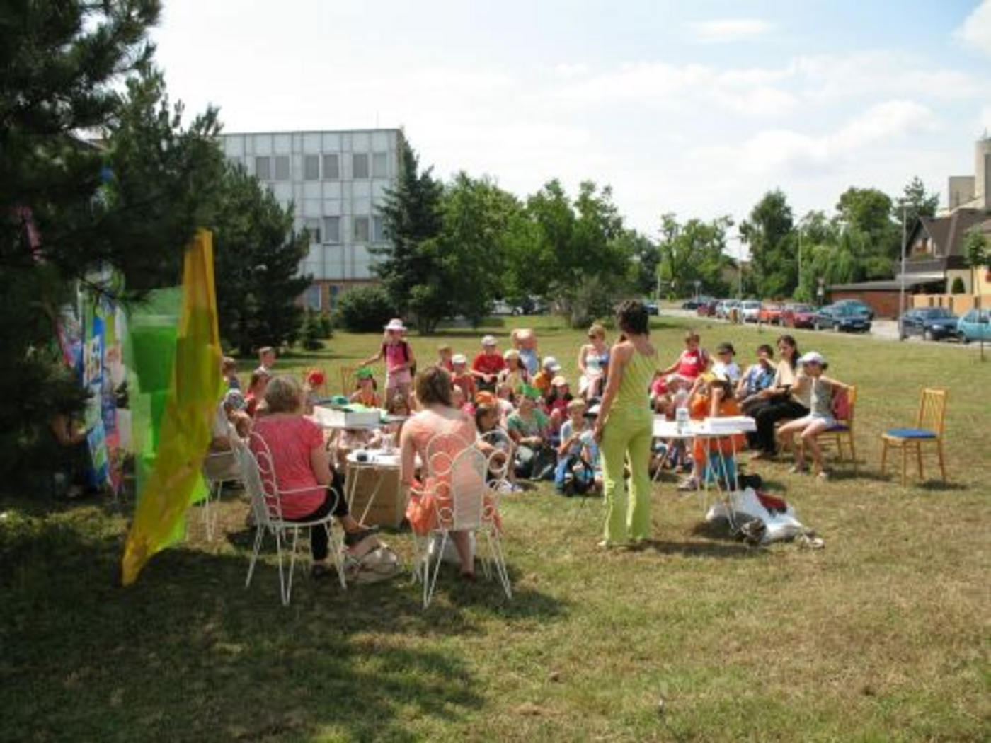 Teplé slnečné počasie vylákalo von aj nás, a tak sme sa s knižnicou aspoň na jedno dopoludnie presťahovali pod holé nebo. Trávnik a stromy vytvorili ideálne prostredie pre čítanie z knihy prešovskej autorky Jany Bodnárovej O strome, ktorý bol na ceste. V rozprávkovom svete nás svojím tancom najskôr privítali lesné víly a škriatkovia z krúžku záujmovej činnosti pri ZŠ F.E.Scherera. Potom pani spisovateľka spolu s výtvarníčkou Martinou Rozinajovou priblížili deťom, ako vzniká nielen textová, ale aj obrazová časť knihy. Deti zo ZŠ Brezovej a F.E.Scherera mali zároveň jedinečnú možnosť pokrstiť aj jej ďalšiu spoločnú knižku, a to papierovými lístkami, ktoré špeciálne na túto príležitosť vyrobil "najväčší papierológ na svete" Karol Krčmár. Ten potom pozval všetkých na návštevu do svojho papierového kráľovstva a predviedol, čo všetko sa dá vyčarovať z papiera niekoľkými jednoduchými zástrihmi.