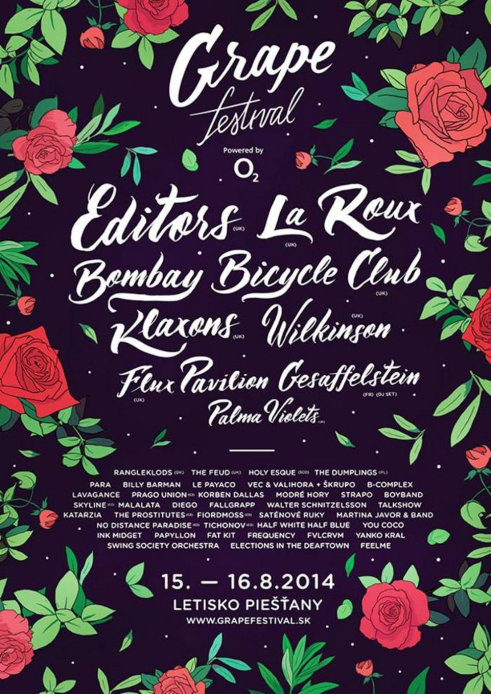 * Editors (uk) * La Roux (uk) * Bombay Bicycle club (uk) * Klaxons (uk) * GESAFFELSTEIN (fr) * Palma Violets (uk) * Flux Pavilion (uk) * Wilkinson (uk) * Rangleklods (dk) * The Feud (uk) Holy Esque (sco) * The Dumplings (pl) * PARA - Brutalna Zostava * Le Payaco Official * Billy Barman *VEC & Valihora + Škrupo * B-Complex * Lavagance * Korben Dallas * PRAGO UNION (official) * Modré Hory * Strapo (Official) * SKYLINE (cz) * BoyBand * Swing Society Orchestra * MALALATA * Katarzia * INK Midget * Diego * Fallgrapp * Walter Schnitzelsson * FVLCRVM * Talkshow * YouCoco * The Prostitutes (cz) * Fiordmoss (cz) * Elections In The Deaftown *Papyllon * Saténové Ruky * Martina Javor & Band * No Distance Paradise (cz) * Tichonov (cz) * Half White Half Blue * Frequency * Fat Kit * Feelme