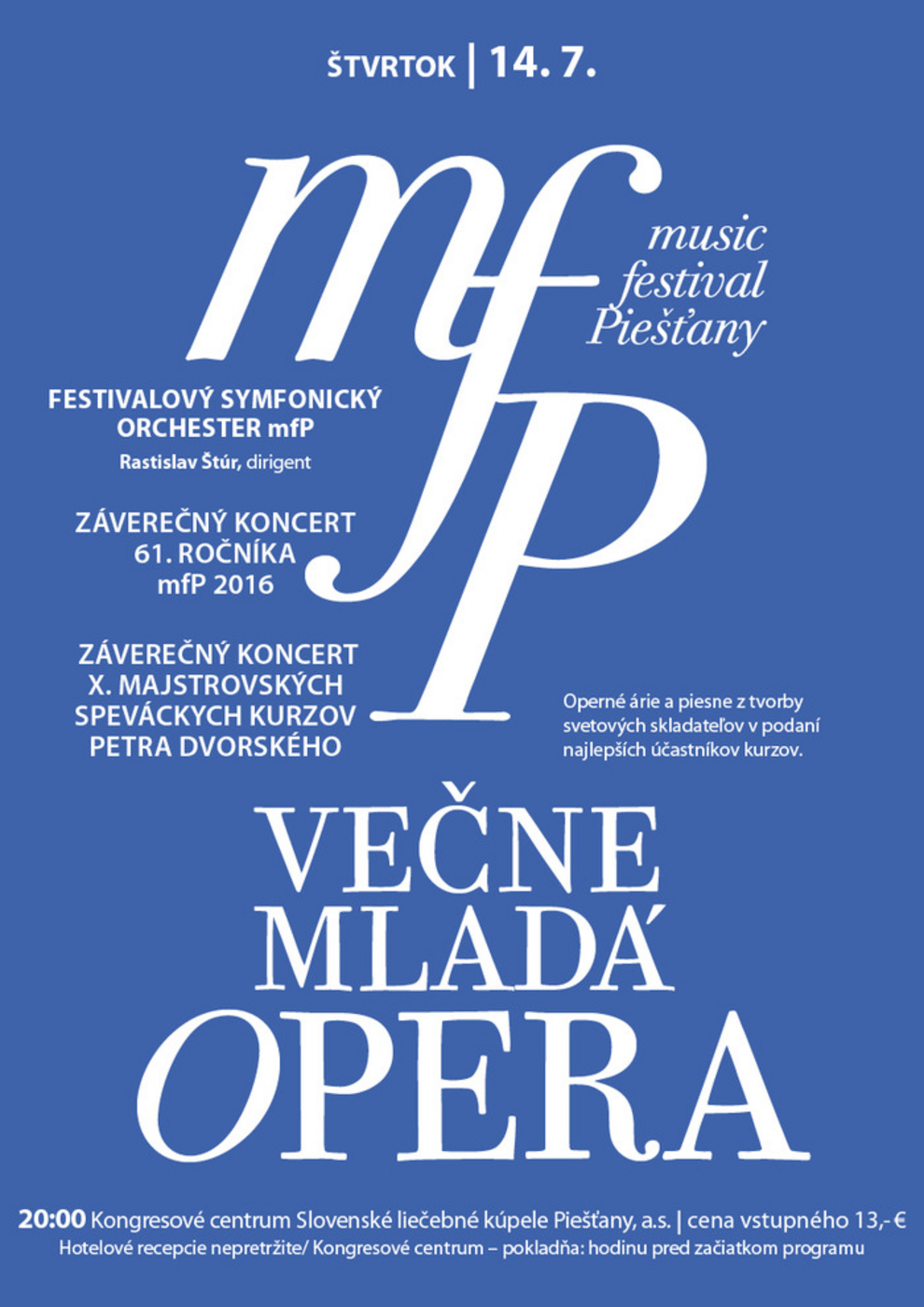 14. 07. 2016 o 20.00 h Spoločenské centrum na Kúpeľnom ostrove