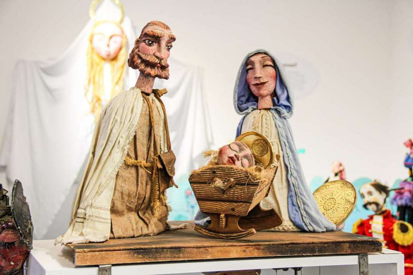 Na tejto výstave si môžete pozrieť výber z tradičných drevených marionet zapožičaných od Ivana Gontka (divadlo Tyjátr), Juraja Hamara (Teatro Carnevalo) a Beaty Zázrivcovej (Bratislavské bábkové divadlo). Bábky zo svojich inscenácií poskytli Miro Duša (Teátro Neline, Divadlo PIKI), Markéta Plachá (Divadlo PIKI) a Bábkové divadlo Žilina. Študentské práce vytvorili poslucháči Katedry bábkarskej tvorby Divadelnej fakulty VŠMU v Bratislave. Skice bábok popredných scénografov nám venoval Juraj Poliak (Bábkové divadlo Žilina).