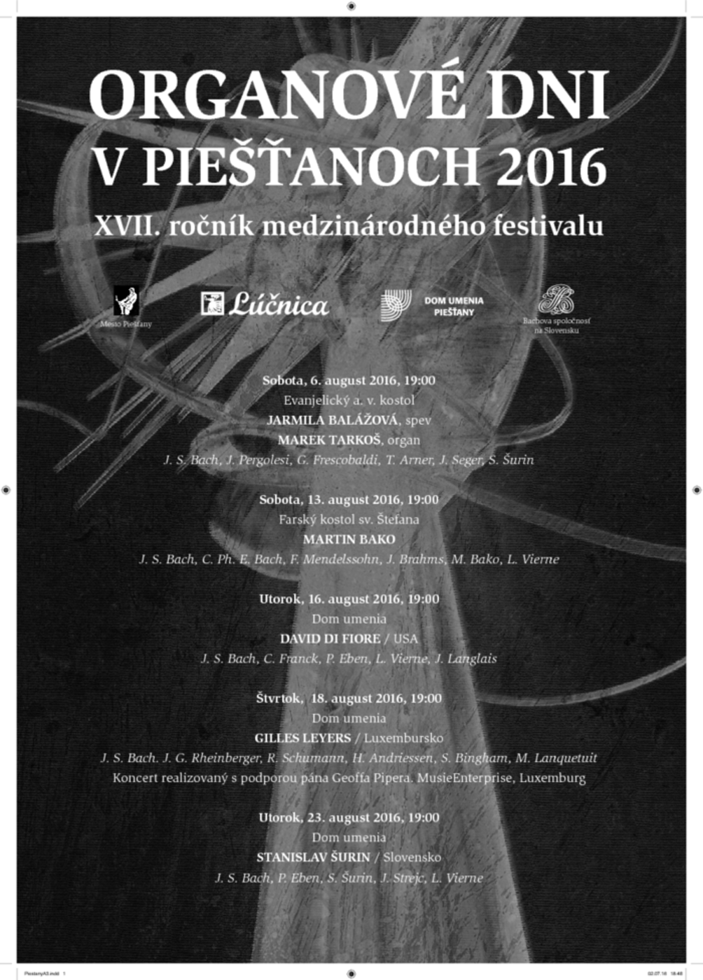 16. 08. 2016 o 19.00 h Dom umenia Piešťany