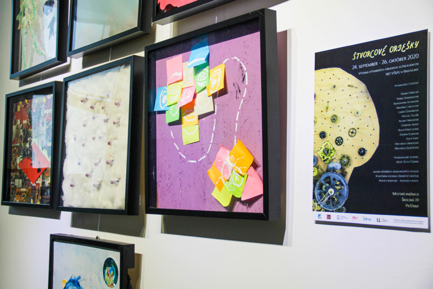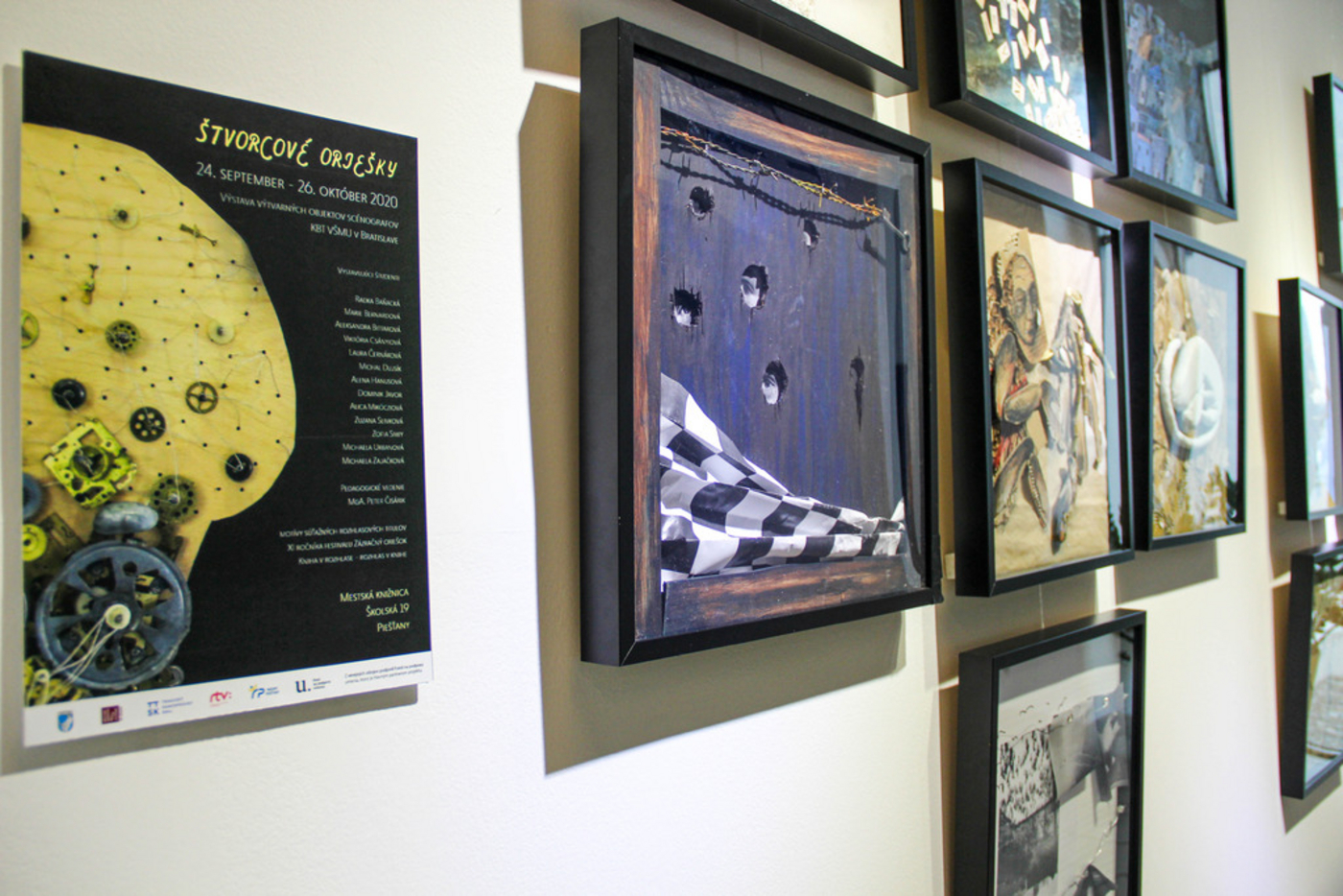 Môžu byť oriešky štvorcové? Môžu. Teda aspoň tie, ktoré sme ukryli do rámov obrazov visiacich na prízemí knižnice. Výstavu Štvorcové oriešky tvoria výtvarné objekty scénografov Katedry bábkarskej tvorby Divadelnej fakulty Vysokej školy múzických umení v Bratislave na motívy súťažných rozhlasových titulov 11. ročníka festivalu Zázračný oriešok. Obdivovať ich môžete od 24. septembra do 26. októbra 2020. Svoje práce vystavujú študenti Radka Baňacká, Marie Bernardová Aleksandra Bittarová, Viktória Csányiová, Laura Černáková, Michal Dujsík, Alena Hanusová, Dominik Javor, Alica Mikócziová, Zuzana Slivková, Zofia Siwy, Michaela Urbanová a Michaela Zajačková pod pedagogickým vedením MgA. Petra Čisárika.