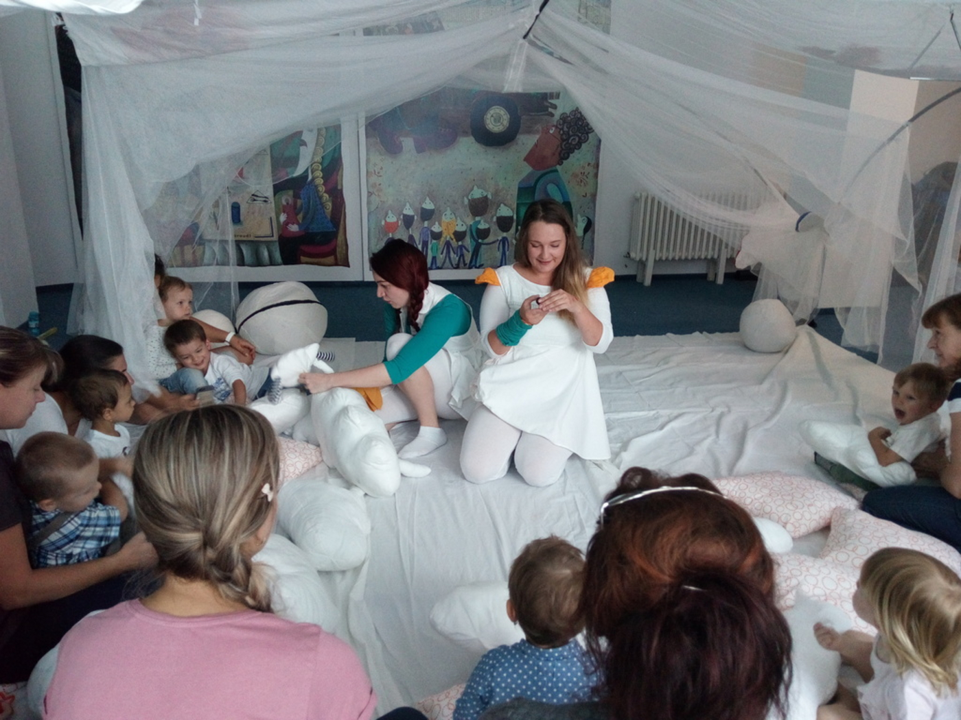 Interaktívne predstavenie pre batoľatá z cyklu Zahrajme sa s knižkou. Účinkujú Oľga Novotná Hincová a Alica Bukovčanová.