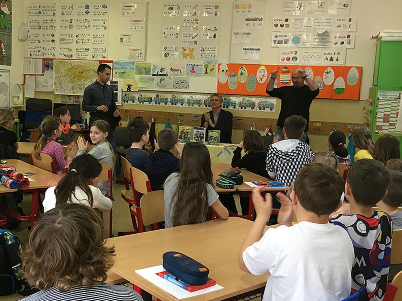 Beseda s autorom Romanom Bratom a ilustrátorom Miroslavom Regitkom.