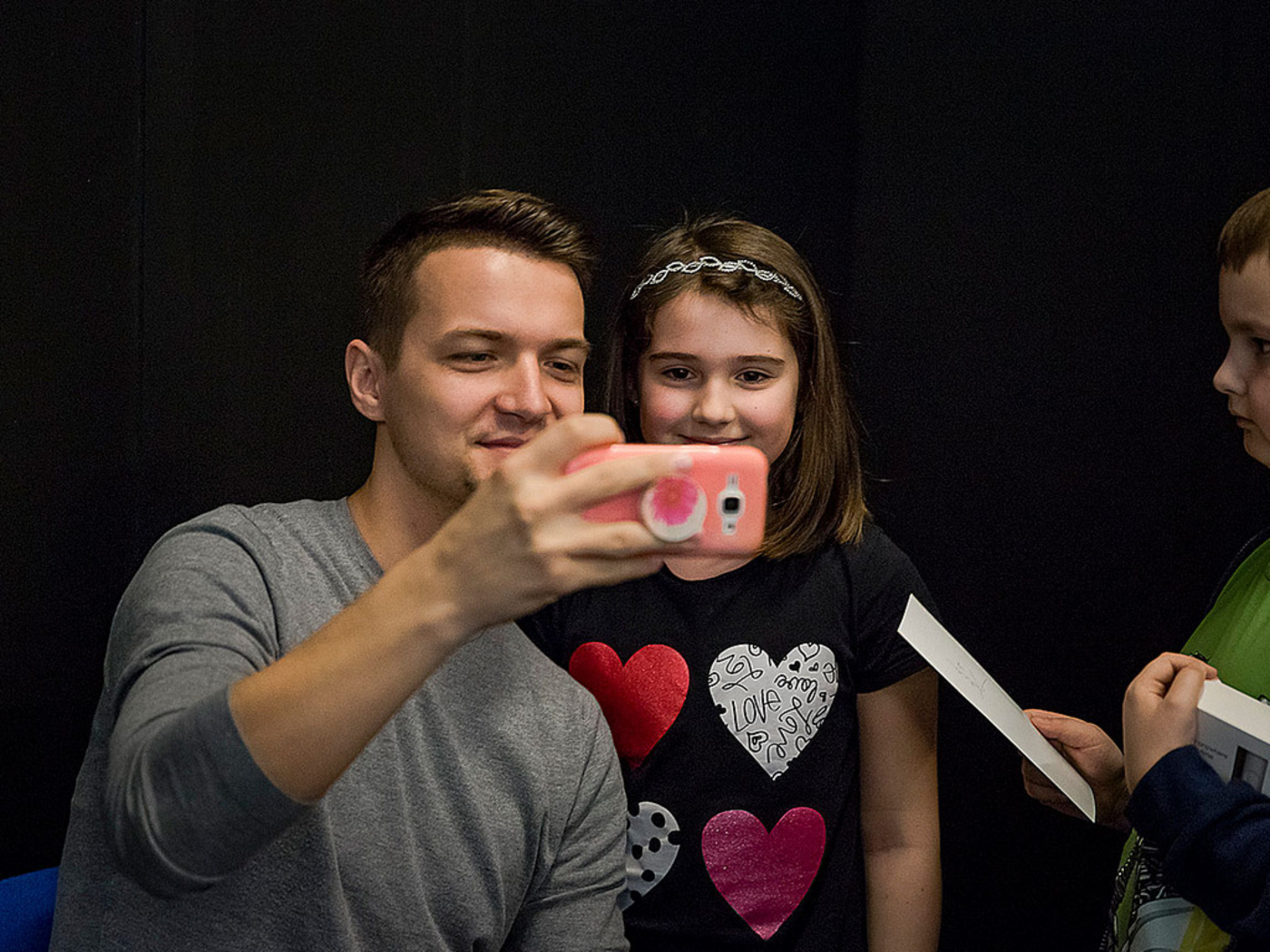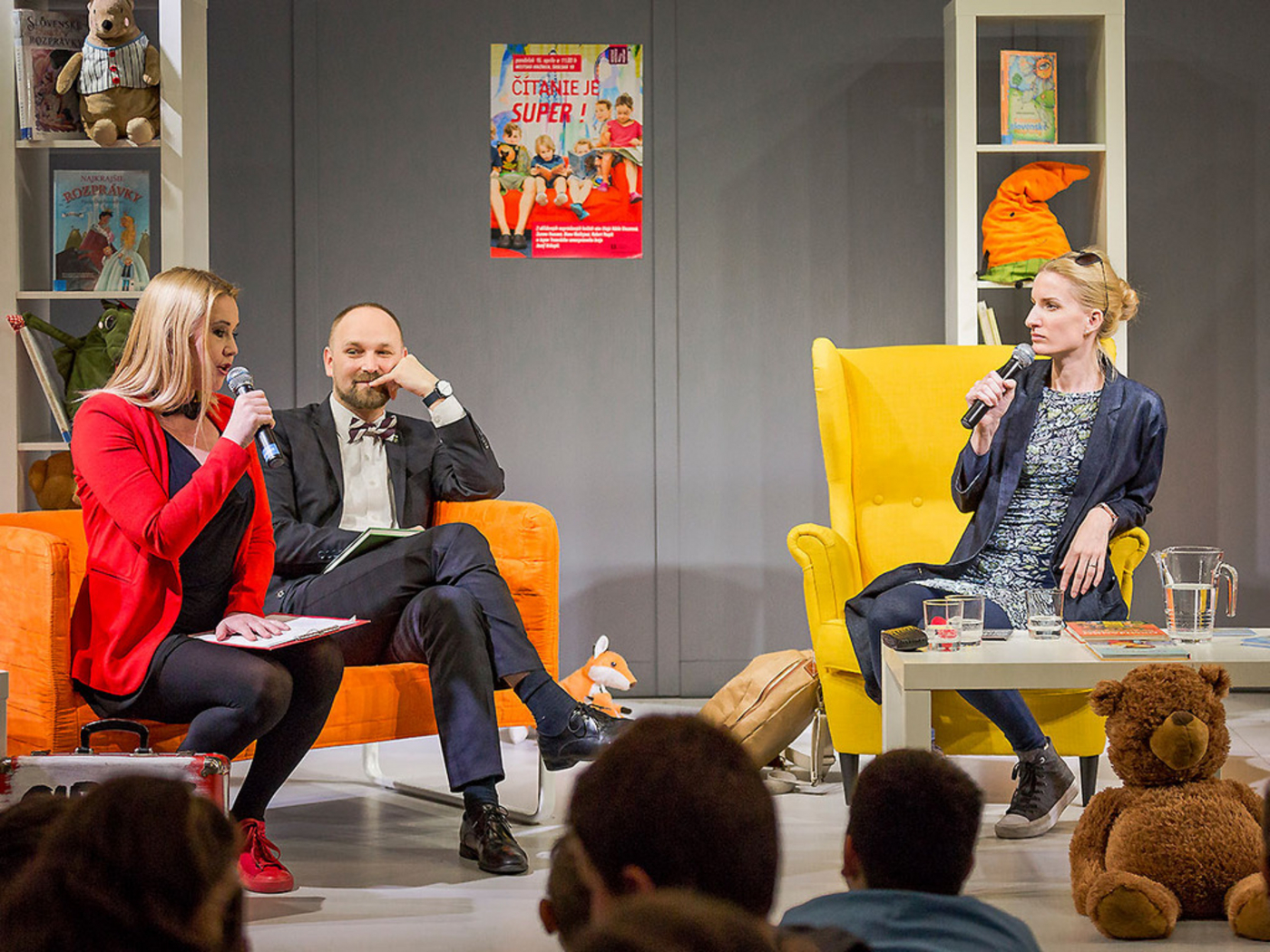 Z obľúbených rozprávkových knižiek čítajú Adela Vinczeová, Zuzana Haasová, Diana Mašlejová, Robert Pospiš a župan TTSK Jozef Viskupič.