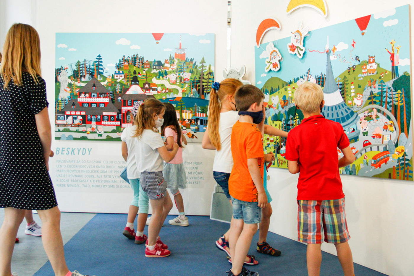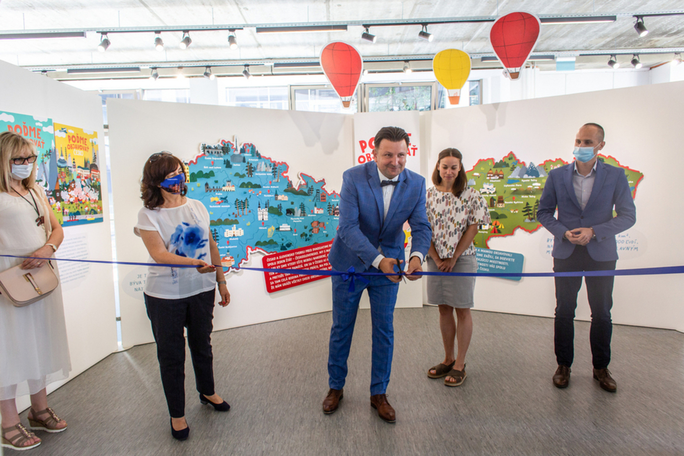 Vernisáž výstavy veľkoplošných ilustrácií Márie Nerádovej z kníh Pojďme objevovat Česko a Poďme objavovať Slovensko.