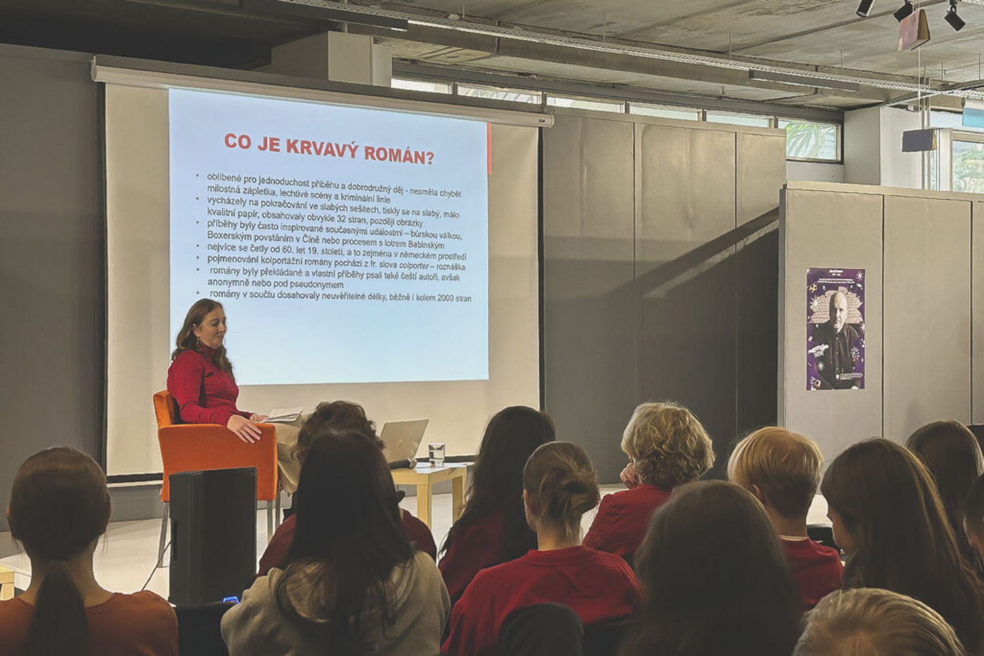 Prednáška s premietaním Hany Klimešovej z Regionálního muzea v Litomyšli o Josefovi Váchalovi a jeho slávnom Krvavom románe.