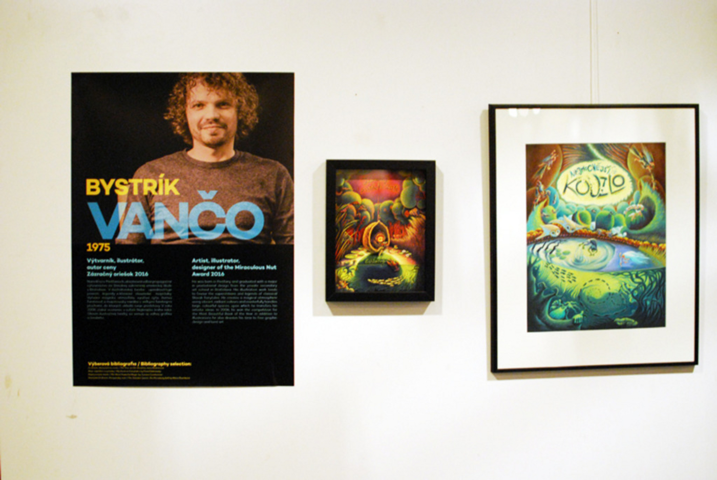 Vernisáž výstavy ilustračnej tvorby tvorcov ceny deviatich ročníkov rozhlasového festivalu Zázračný oriešok.