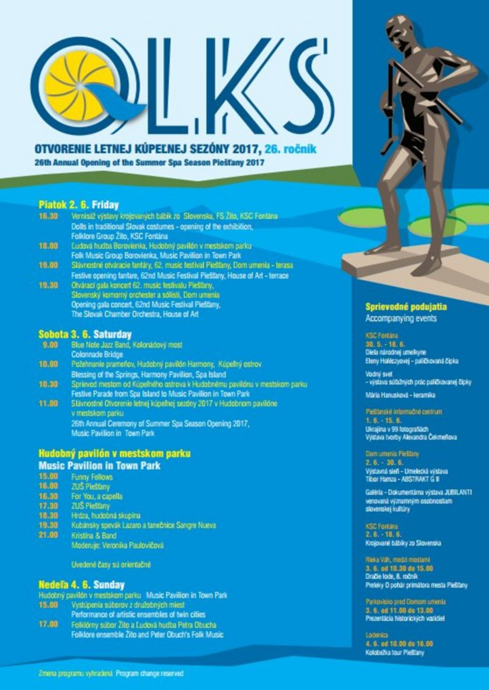 11.00 h - slávnostné Otvorenie letnej kúpeľnej sezóny 2017 v Hudobnom pavilóne v mestskom parku