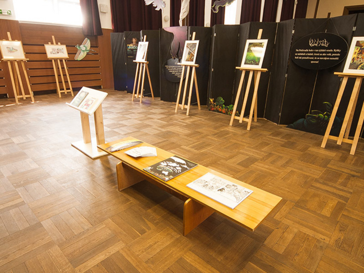 Výstava slovenských ilustrátorov Bystríka Vanču a Daniely Olejníkovej.