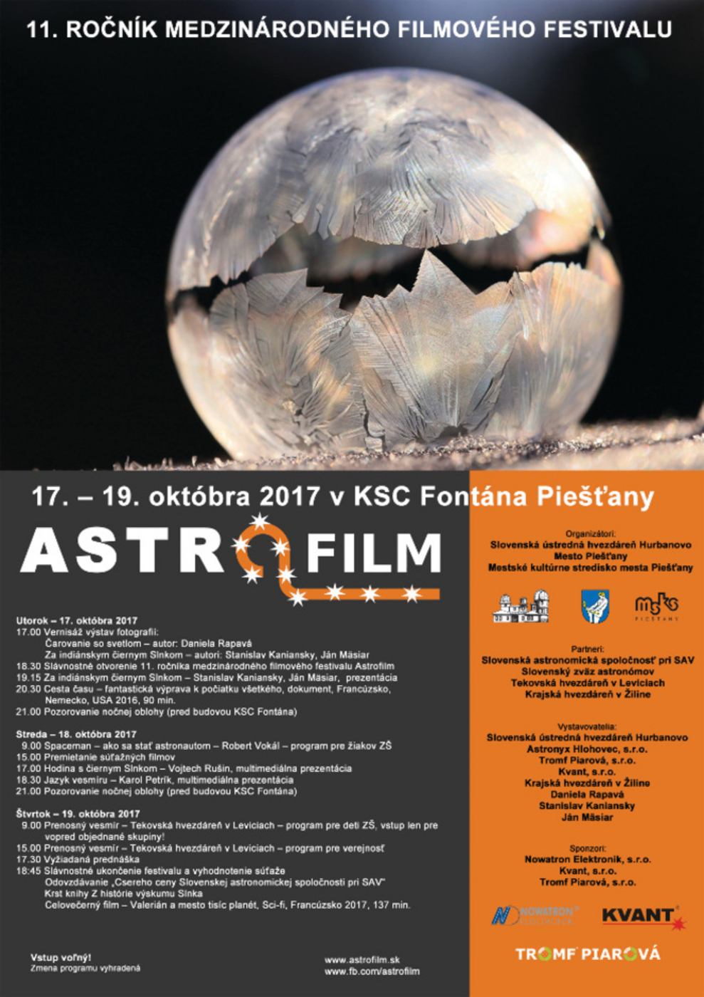 18.30 h - slávnostné otvorenie 11. ročníka medzinárodného filmového festivalu Astrofilm