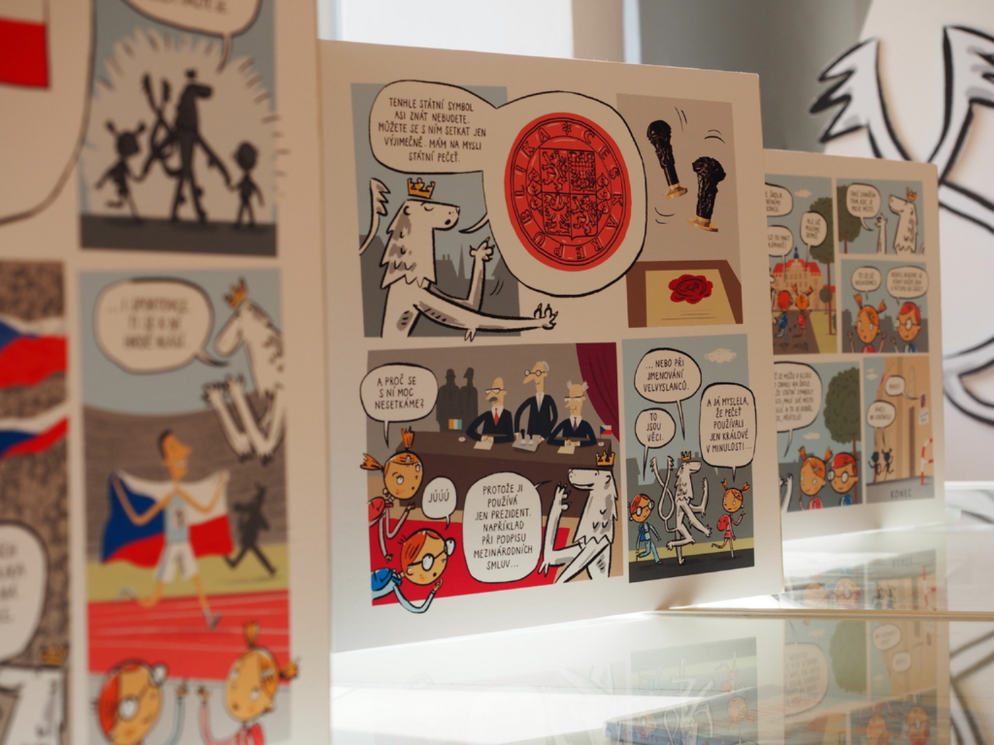 Výstava na motívy knihy Milana Starého a Martina Veliška Můj stát - Putování s českým lvem za sedmi státními symboly, ktorá kreslenou a deťom zrozumiteľnou formou predstavuje české štátne symboly, ich pôvod, význam a možnosti použitia. Ilustrácie návštevníkov prevedú aj vznikom českej hymny, československej koruny či prvej československej známky.