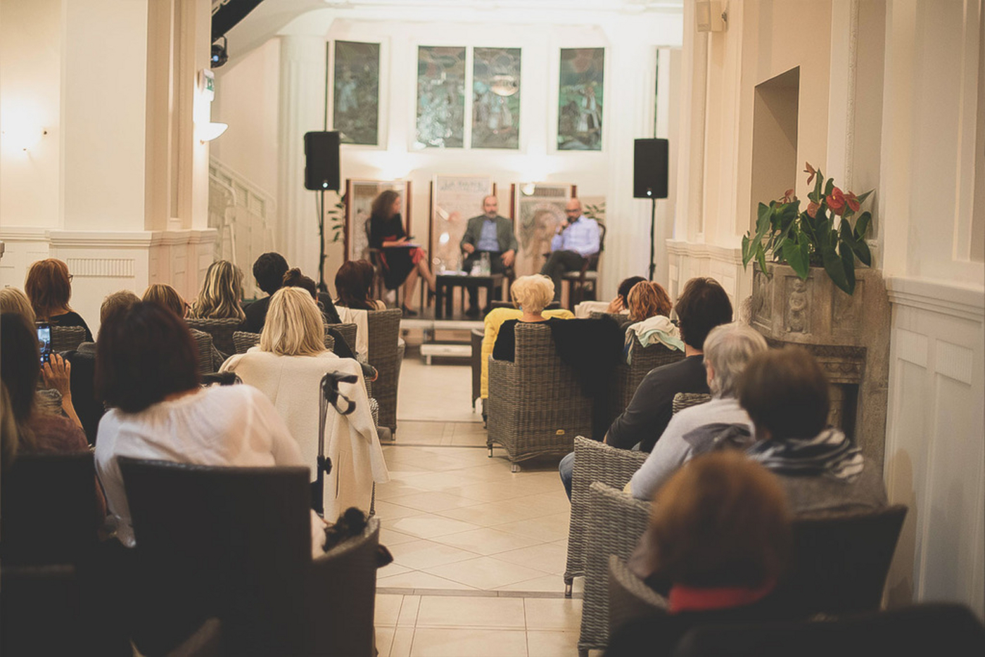 Literárna kaviareň so zaujímavými hosťami, s ktorými sa budeme rozprávať o legendách spätých s Piešťanmi a o vplyve secesie na tvorbu umelcov. Účinkujú spisovateľ Igor Válek, dizajnér Michal Staško, bábkoherečka Sidónia Féderová, moderuje Jarmila Vitovičová. Zlatý vek kúpeľov nám navodia herci a speváci z divadla Féder Teáter.