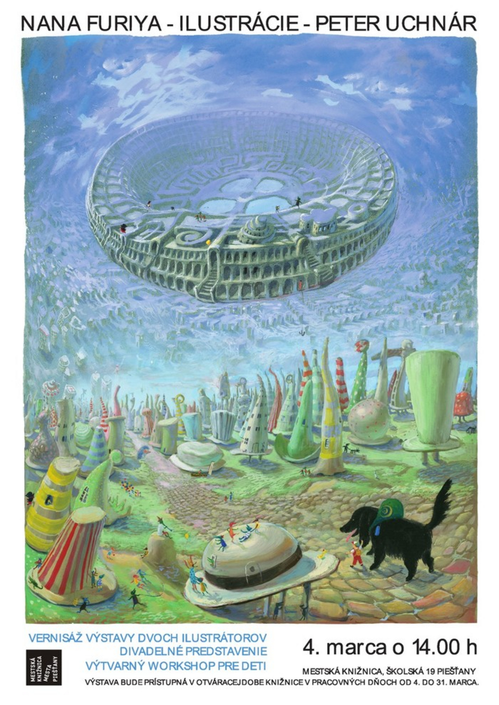Vernisáž výstavy dvoch ilustrátorov, divadelné predstavenie a výtvarný workshop pre deti.