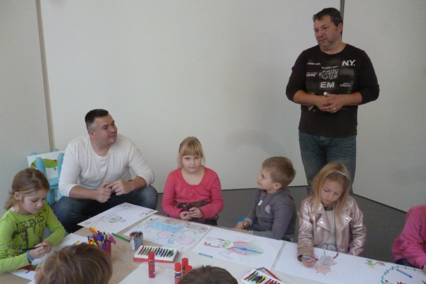 Výtvarný workshop s ilustrátorom Jurajom Martiškom za účasti autora Jiřího Holuba.