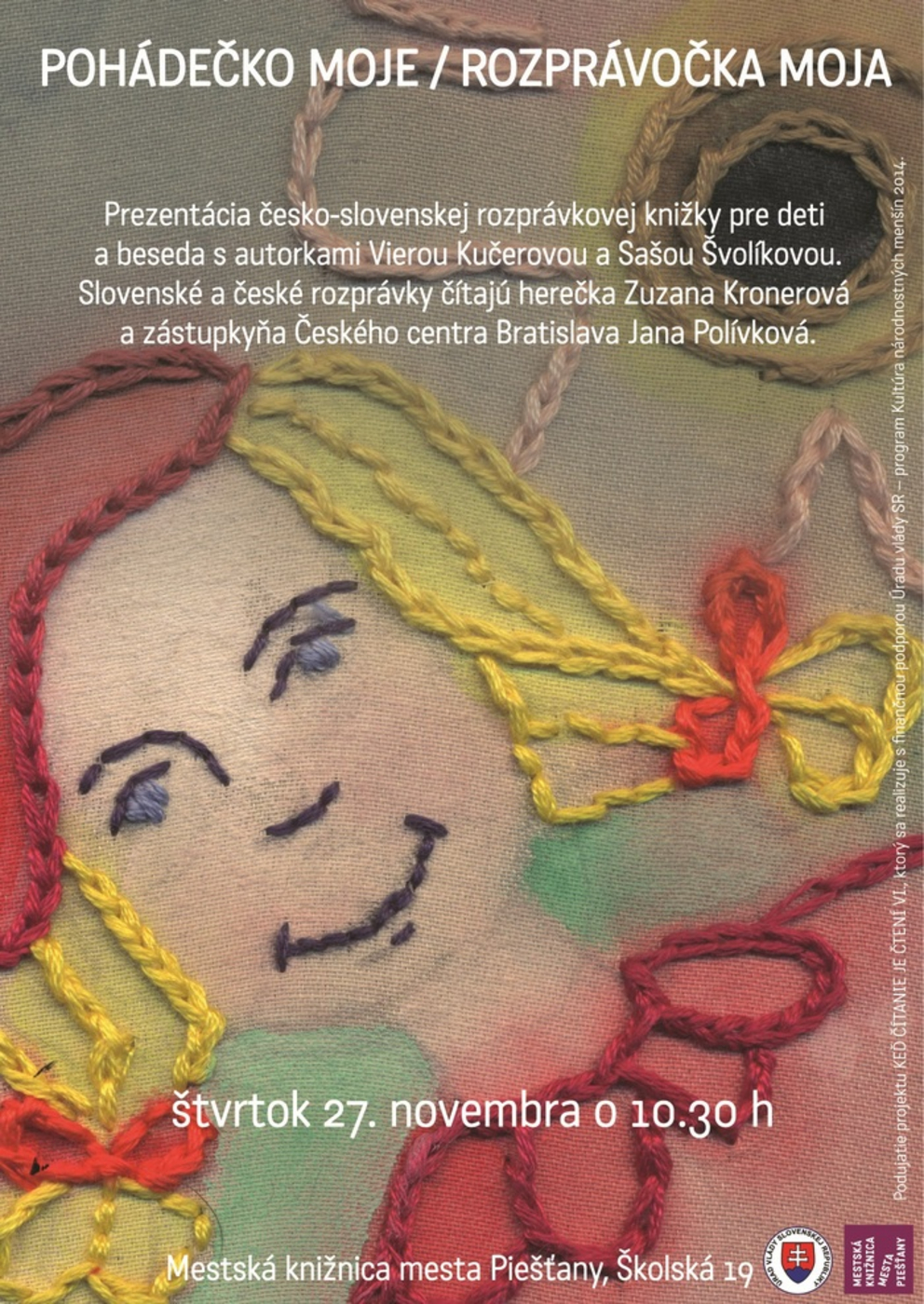 Prezentácia česko-slovenskej rozprávkovej knižky pre deti a beseda s autorkami Vierou Kučerovou a Sašou Švolíkovou. Slovenské rozprávky číta herečka Zuzana Kronerová, české zástupkyňa Českého centra Bratislava Jana Polívková.