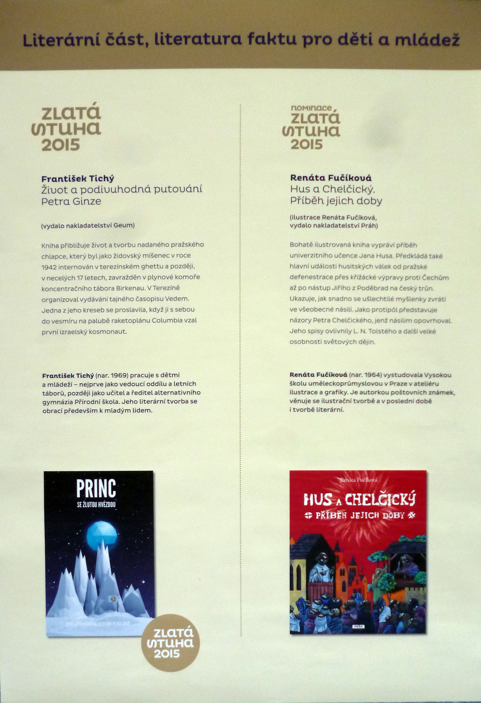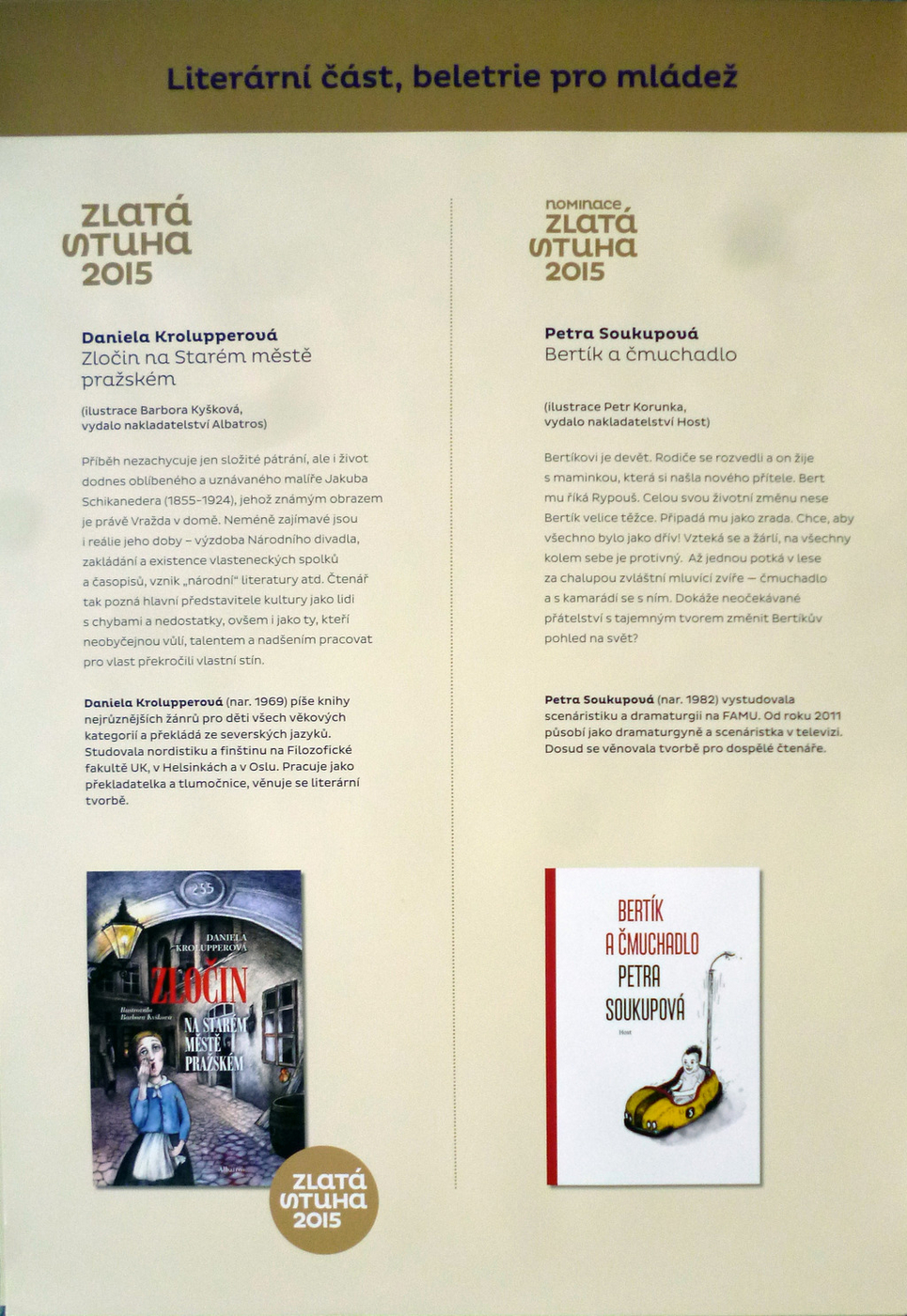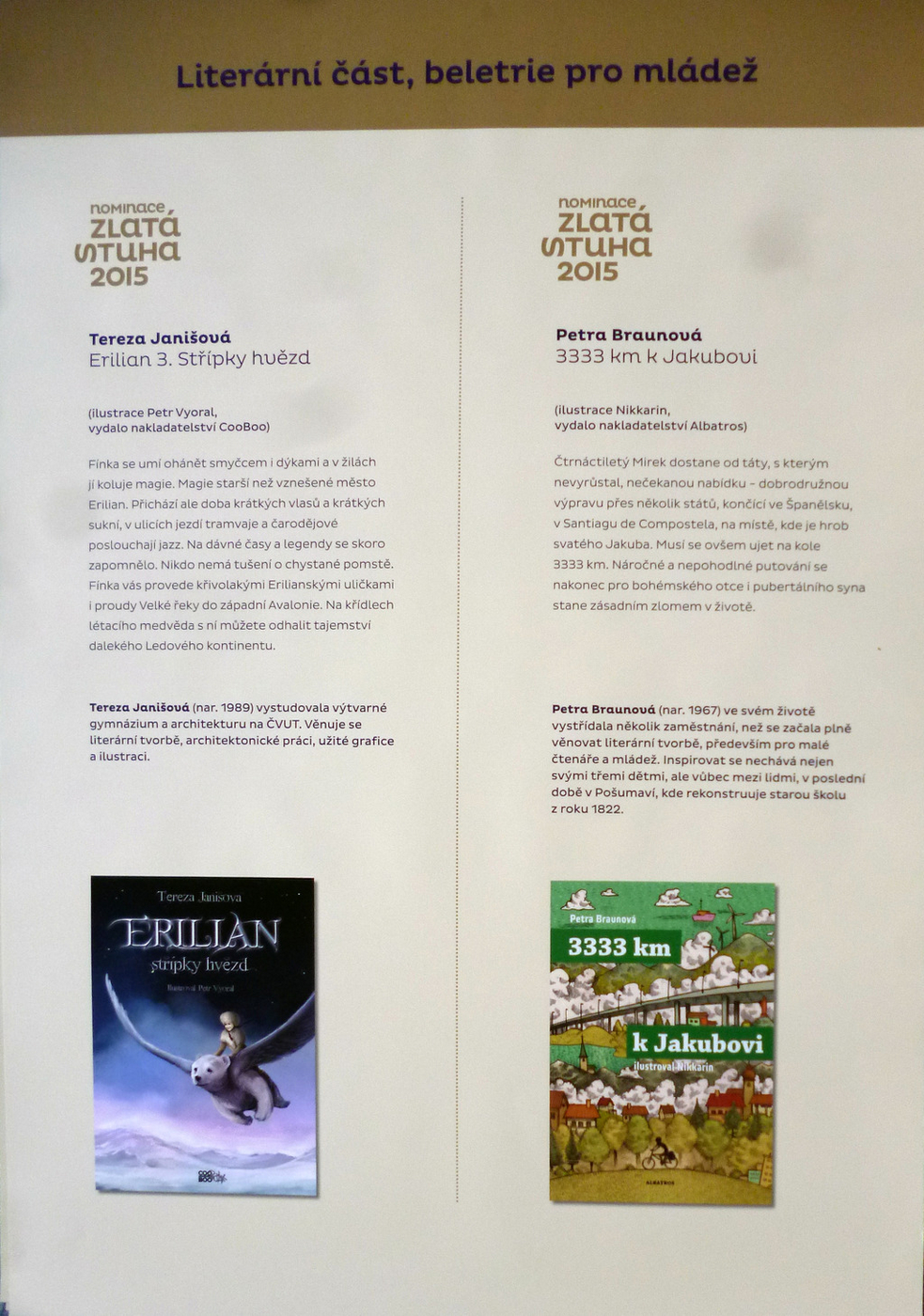 2. Výtvarná časť: knihy pre mladšie deti, knihy pre staršie deti a mládež, literatúra faktu pre deti a mládež, výtvarný počin roka