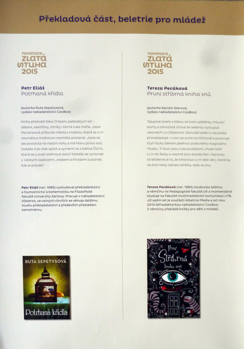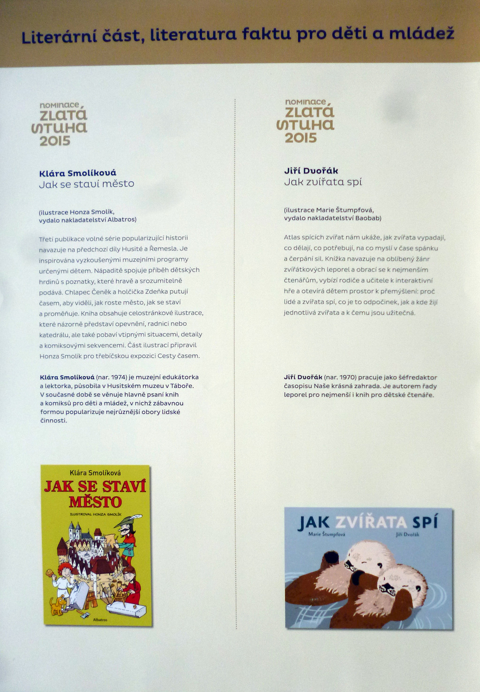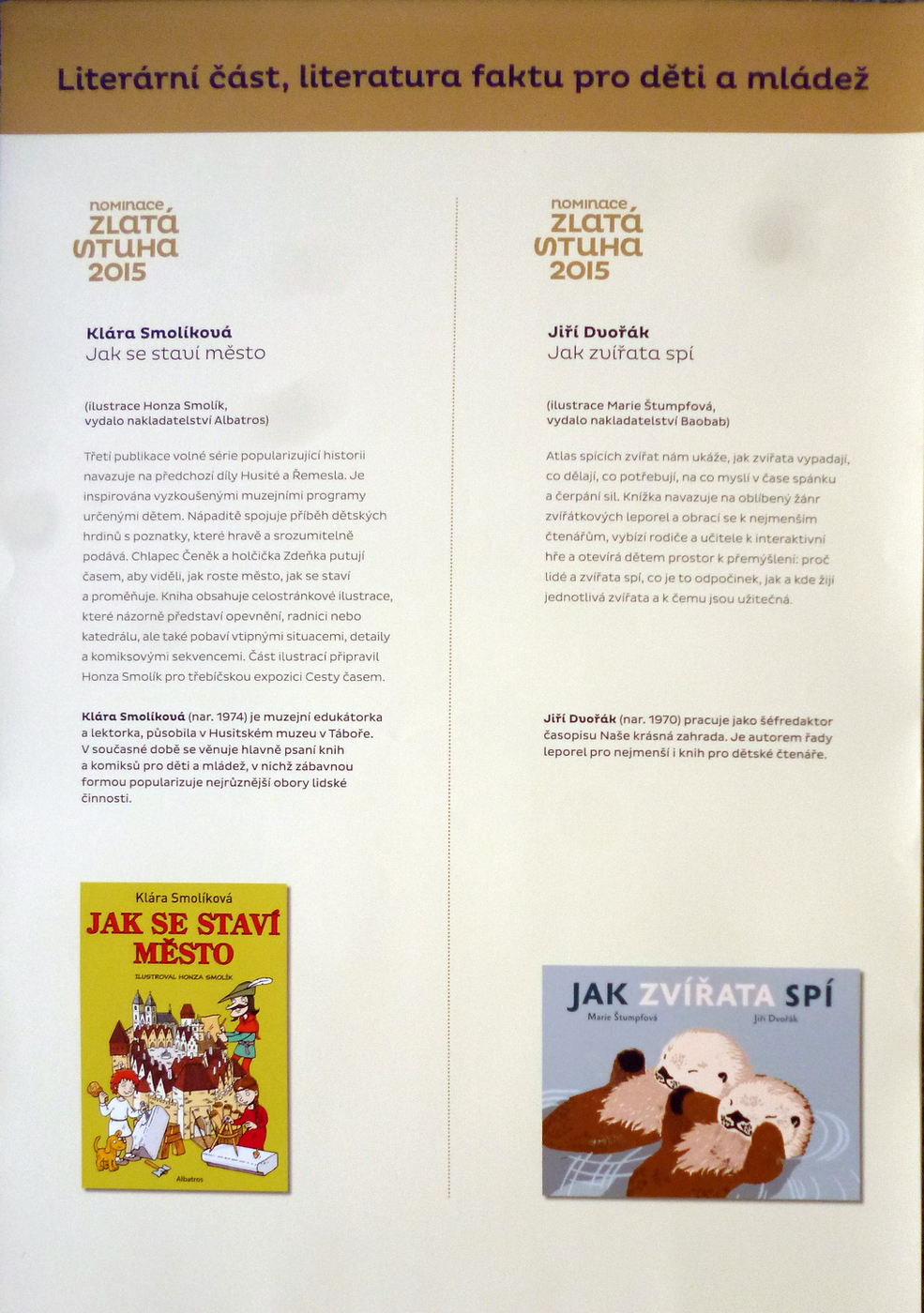 2. Výtvarná časť: knihy pre mladšie deti, knihy pre staršie deti a mládež, literatúra faktu pre deti a mládež, výtvarný počin roka