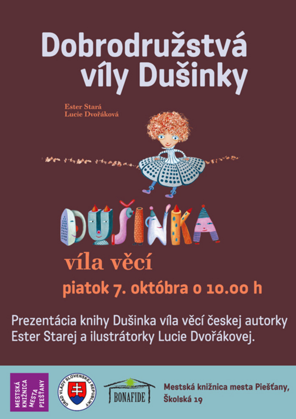 Prezentácia knihy Dušinka víla věcí českej autorky Ester Starej a ilustrátorky Lucie Dvořákovej.