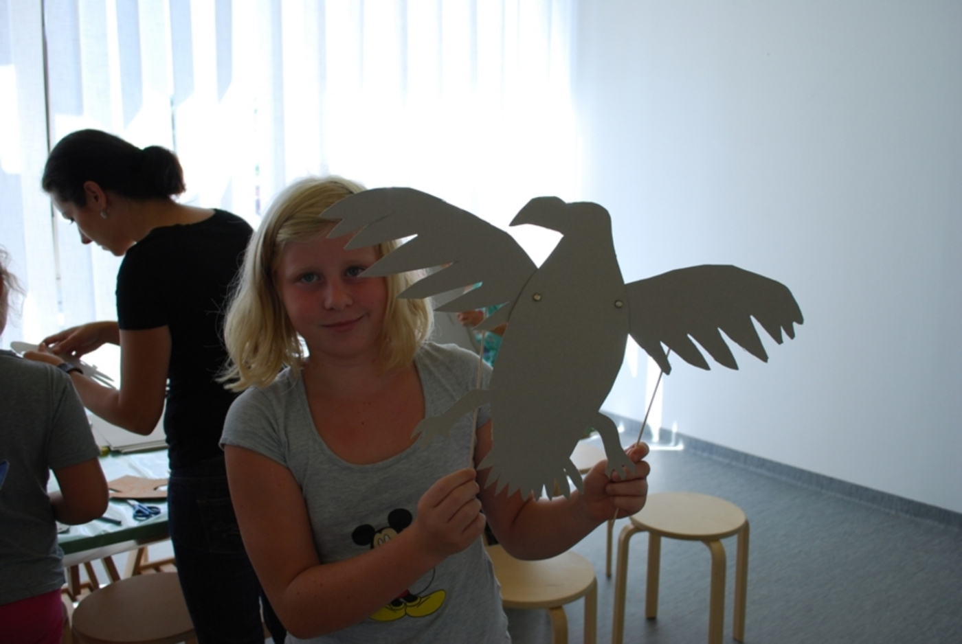 Výtvarný a bábkarský workshop pre deti zameraný na výrobu plošných bábok a základy hrania bábkového divadla.