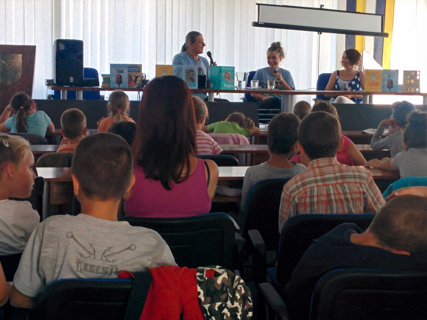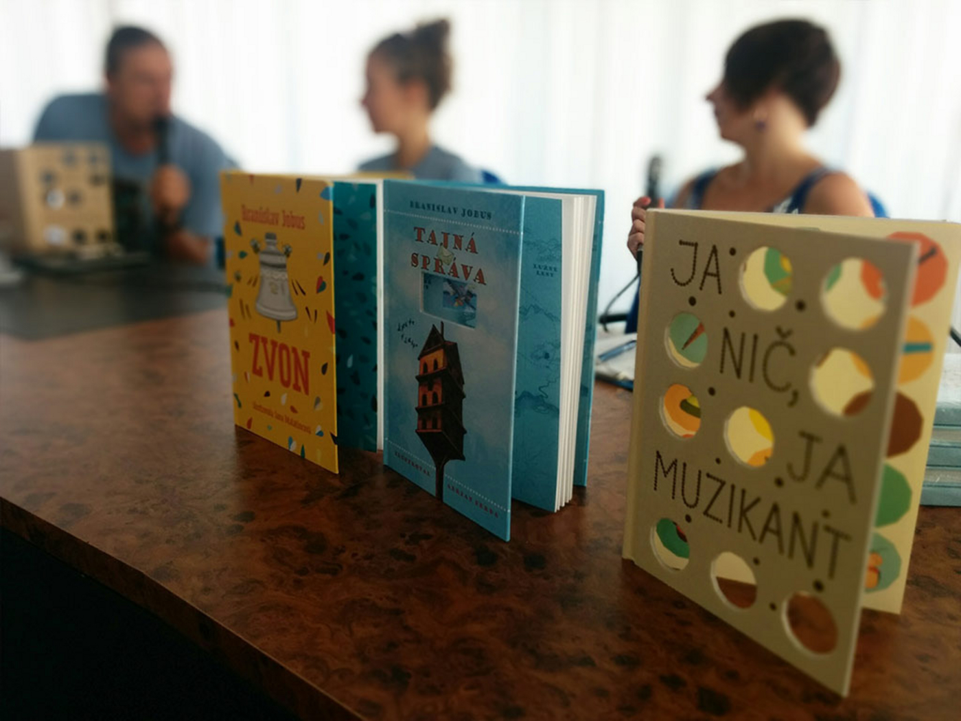 Stretnutie s autormi knihy - spisovateľom a hudobníkom Braňom Jobusom a ilustrátorkou Emíliou Jesenskou.