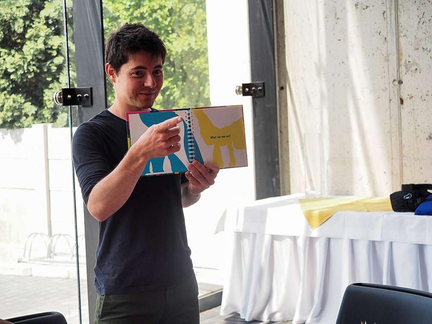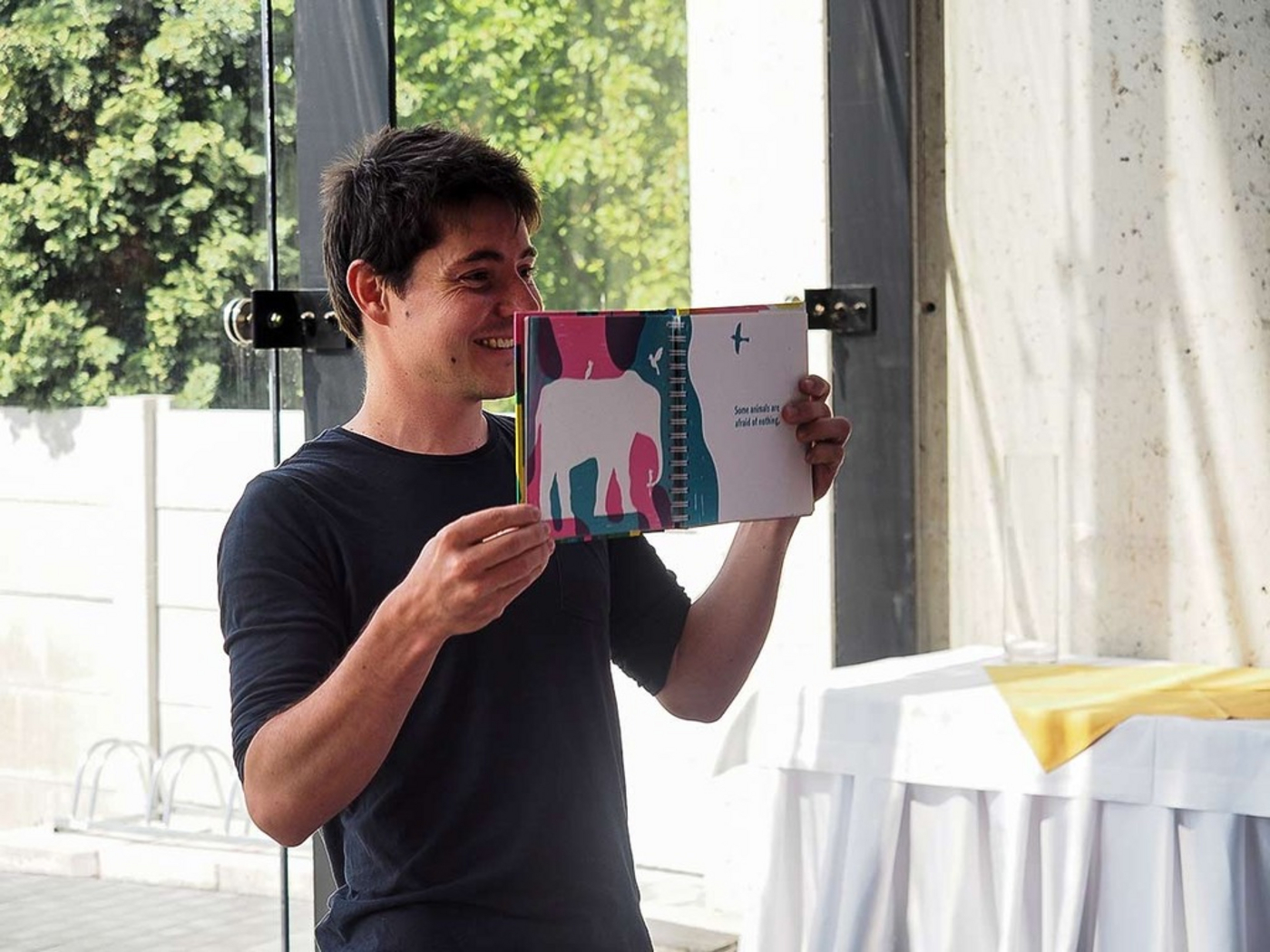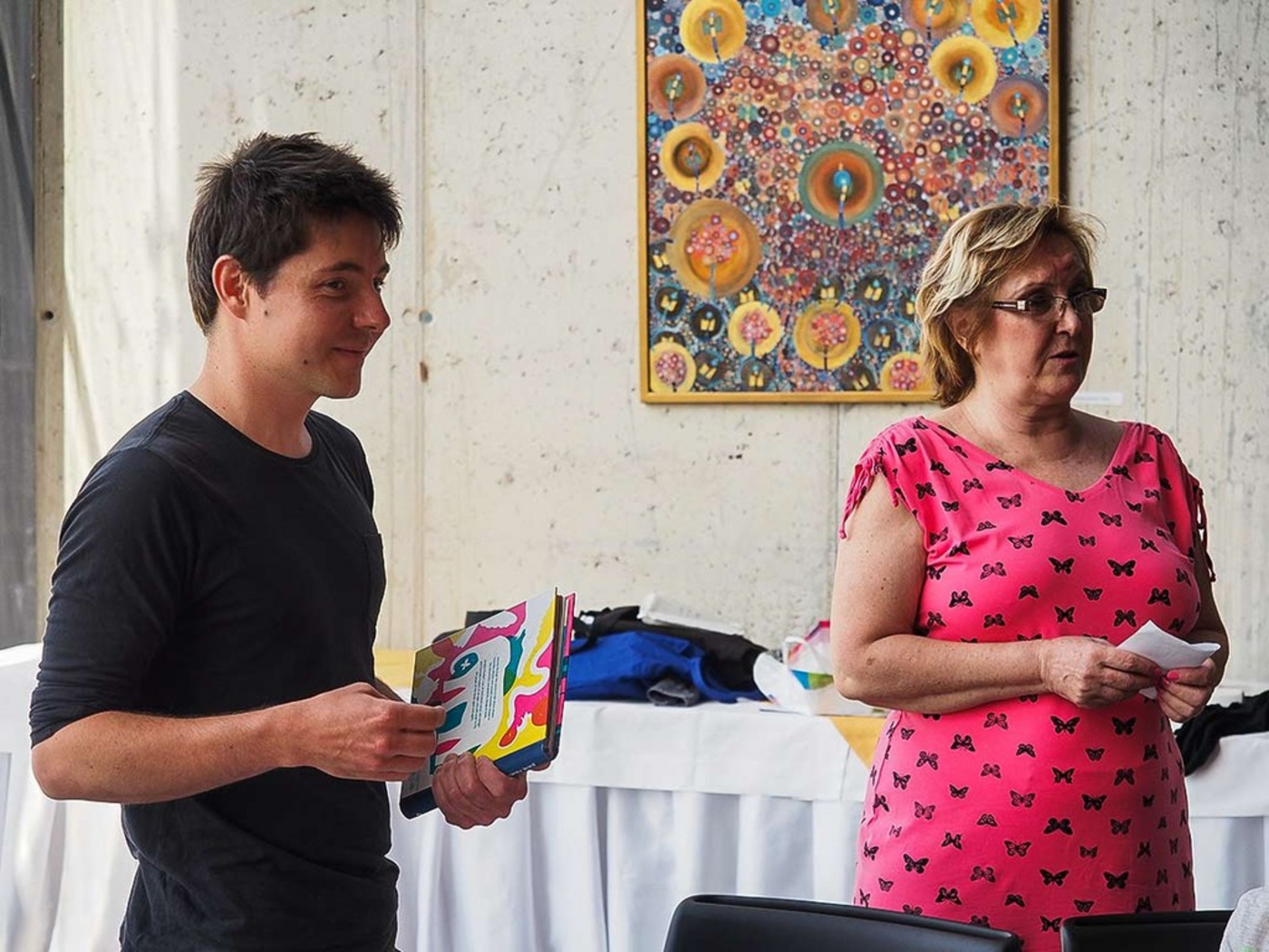 Výtvarný workshop s ilustrátorom Jérémie Fischerom (Francúzsko) a žiakmi 3. ročníka ZŠ Mojmírova Piešťany. Moderuje a z francúzštiny tlmočí Drahomíra Moretová.