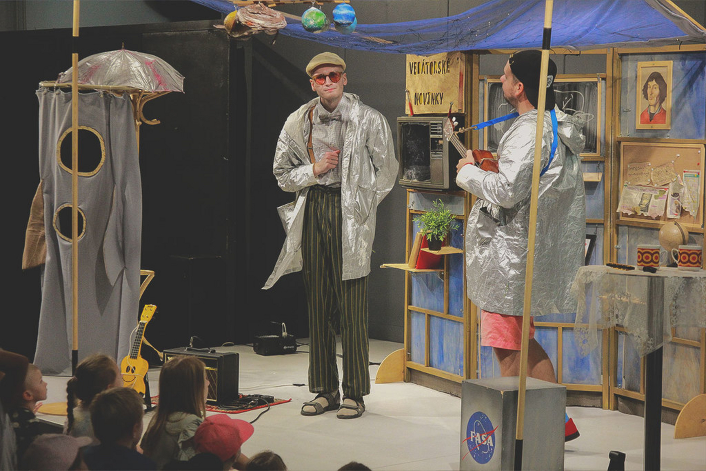 Interaktívna autorská inscenácia so živou hudbou. Účinkuje divadlo SpozaVoza. Divadelné predstavenie o záhadách vesmíru, ľuďoch vo vesmíre a dvoch bláznivých vedcoch.