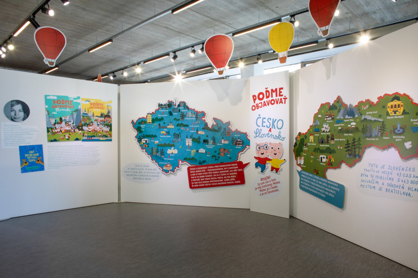 Výstava, ktorá vznikla na motívy kníh známej slovenskej ilustrátorky Márie Nerádovej, náučnou a vtipnou formou prezentuje mestá, pamätihodnosti a prírodné lokality oboch krajín. Pozostáva z dvoch častí: prvá časť výstavy vychádza z knihy Márie Nerádovej Poďme objavovať Slovensko. Na potulkách Slovenskom návštevníci spoznajú Bratislavu, navštívia Festival duchov a strašidiel na Bojnickom zámku, preletia balónom ponad Tatry do Banského múzea v Banskej Štiavnici, v Martine sa poprechádzajú po Múzeu slovenskej dediny, z rebríka spoznajú krásy Slovenského raja, posedia si pri Liptovskej Mare, navštívia jaskyňu či Spišský hrad a oddýchnu si v piešťanských kúpeľoch v termálnej vode, pri vodoliečbe či masáži. V druhej časti výstavy, ktorá vznikla na motívy knihy Pojďme objevovat Česko, sa s hlavnou postavou – prasiatkom Oliverom a jeho zvieracou rodinkou návštevník vydá na potulky Českom. Navštívi hlavné mesto Česka – Prahu, národný park České Švajčiarsko, rozprávkový zámok Hluboká, pozrie si kamenné veže v Adršpašských skalách, raj vlakov a lietadiel v Národnom technickom múzeu, tehlové domčeky v meste topánok Zlíne. Nazrie do priepasti Macocha, poplaví sa na loďke Punkevnou jaskyňou, v Beskydách vyjde k soche Radegasta a k farebným chalúpkam na Pustevnách, sfára do baní v Ostrave, visutou lanovou dráhou sa dostane k „vesmírnej rakete“ – televíznej veži na vrchole Ještěd, v zime sa vyvezie lanovkou na najvyššiu horu Krkonôš Sněžku. Výlet ukončí pod veľkým vianočným stromčekom na námestí v Českom Krumlove.