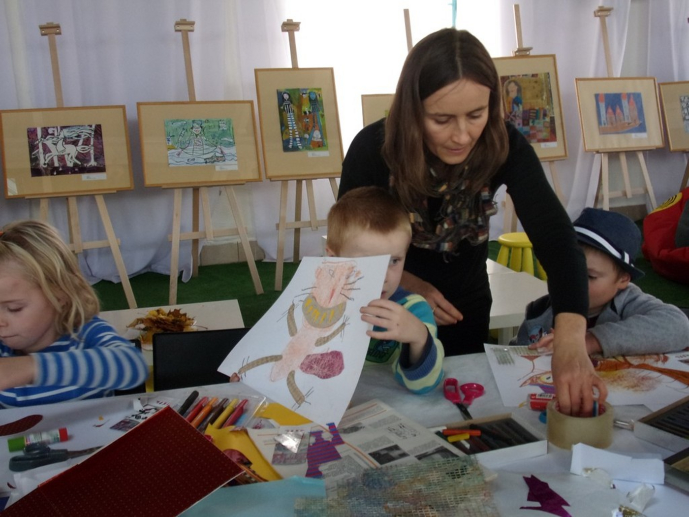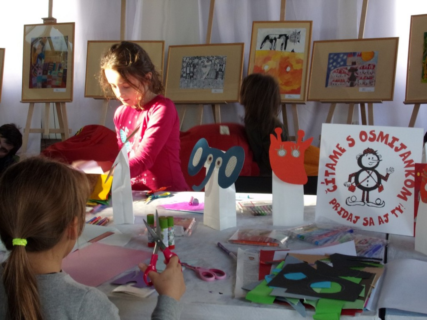 V dňoch 15. – 19. októbra 2014 sa piešťanská knižnica zúčastnila 1. ročníka festivalu Dni slovenskej literatúry v Bratislave. Festival s podtitulom Zaži knihy naživo! priniesol takmer stovku literárnych podujatí, stretnutí s autormi, ilustrátormi, hercami a hudobníkmi na rôznych miestach Bratislavy. Naša knižnica do programu prispela niekoľkými podujatiami. Detským i dospelým návštevníkom bratislavského V-klubu sme ponúkli divadelné predstavenie na motívy víťaznej rozprávky tohtoročného rozhlasového festivalu Zázračný oriešok s názvom Leonardo, kocúr z ulice, v ktorom účinkovali študenti Katedry bábkarskej tvorby VŠMU. Svojich čitateľov prišiel na podujatie pozdraviť aj autor knižnej predlohy, spisovateľ Ján Uličiansky. Pre všetky kreatívne deti sme pripravili tvorivé dielne so známymi slovenskými ilustrátormi, tvorcami ceny Zázračný oriešok Vladom Králom, Petrom Uchnárom a Danielou Olejníkovou. Počas celého víkendu sa deťom venovali aj ďalší úspešní výtvarníci - Miloš Kopták, Matúš Maťátko, Martina Matlovičová, Veronika Holecová a Katarína Ilkovičová. Literárno-výtvarnú dielňu na motívy rozprávky Kristy Bendovej O sedemhlavej žirafe si pre deti pripravila nezisková organizácia Osmijanko. Priestory Starej tržnice skrášlili detské výtvarné práce zo súťaže Zlatá priadka Mária Ďuríčková, ktorú knižnica usporiadala v tomto roku pri príležitosti jej 95. výročia narodenia.
