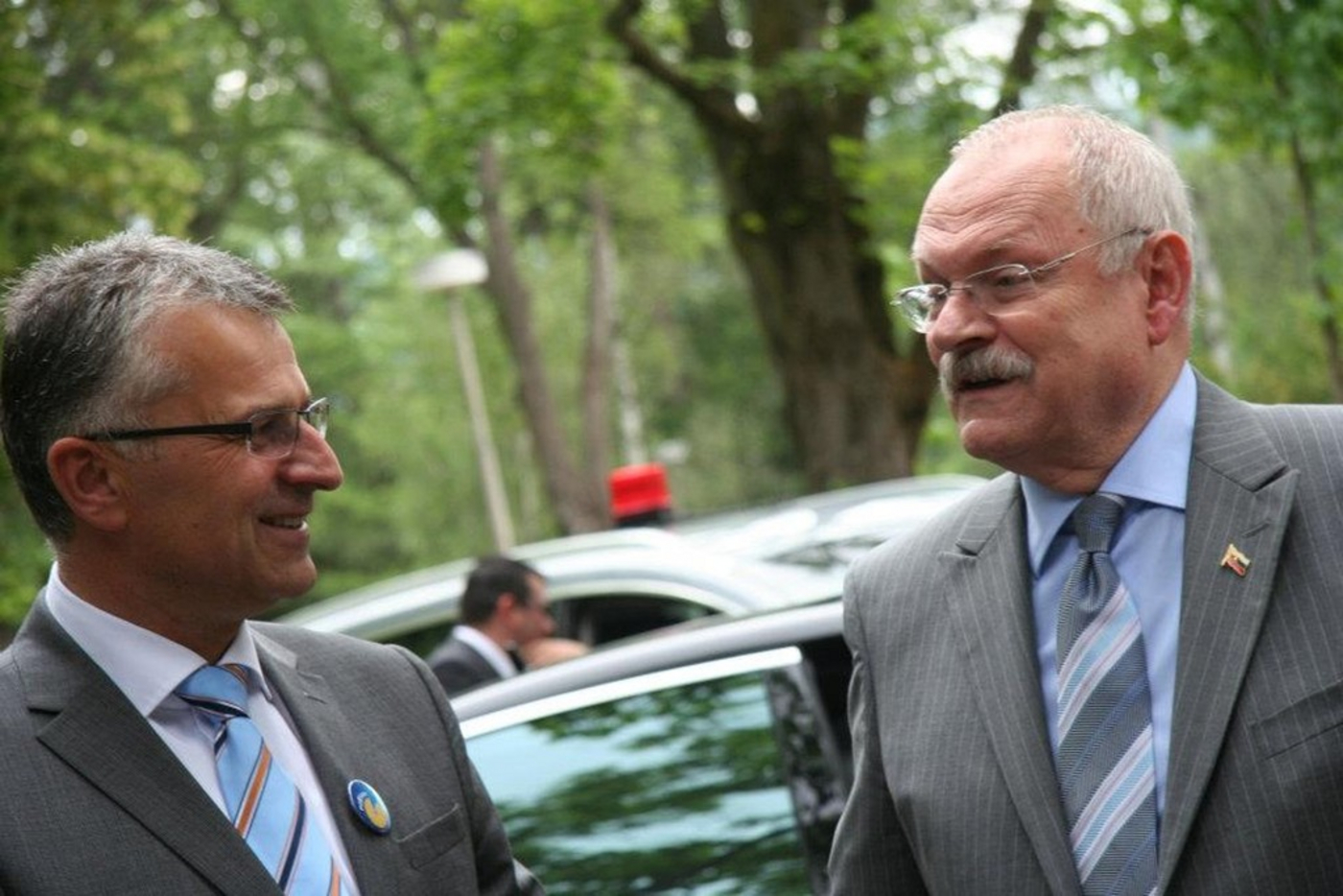 Generálny riaditeľ Kúpeľov Piešťany Klaus Pilz spolu s primátorom mesta Remom Cicuttom privítali prezidenta SR Ivana Gašparoviča a ďalších významných hostí v priestoroch hotela Thermia Palace, ktorý tento rok oslavuje 100 rokov.
