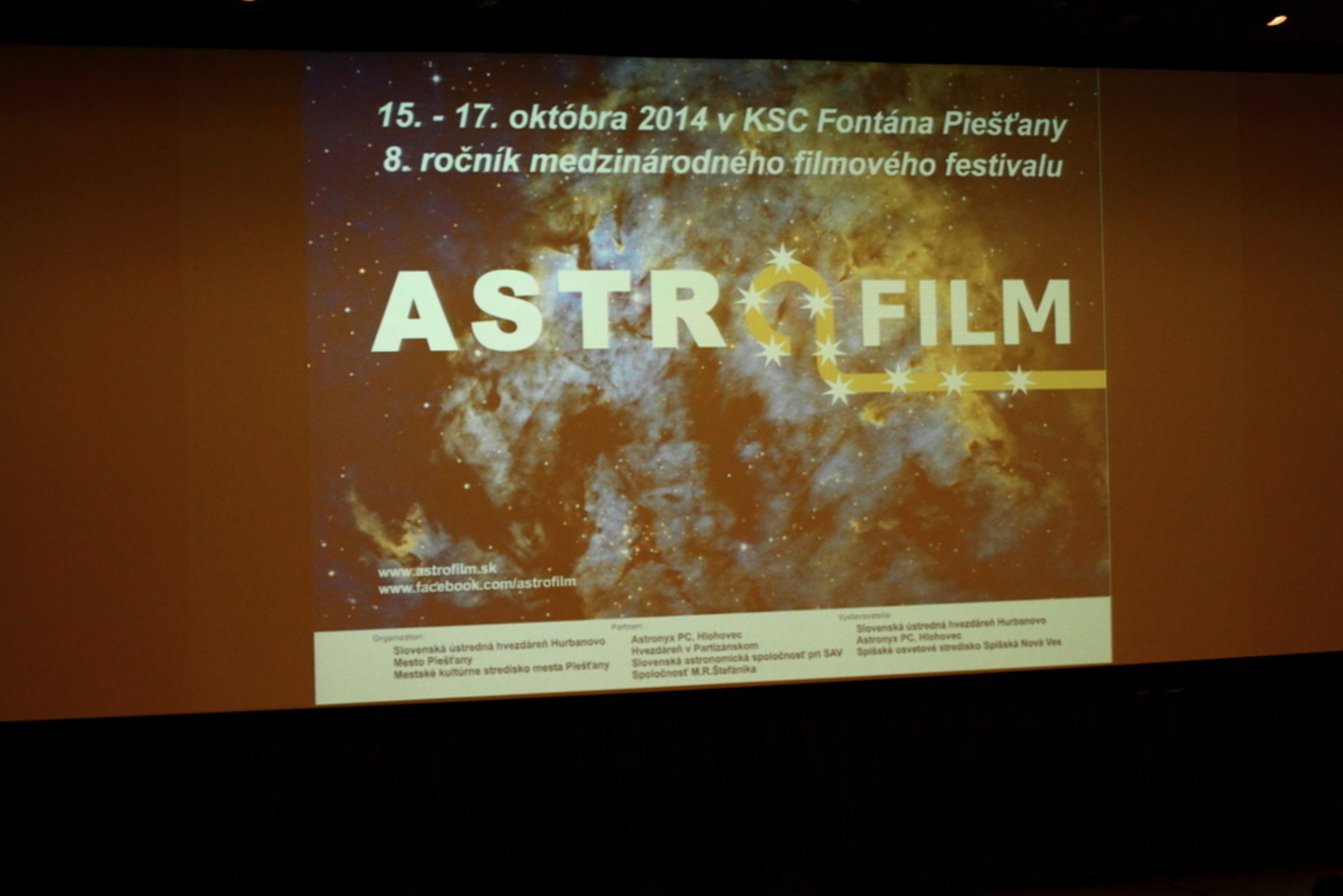 Mesto Piešťany bolo v dňoch 15. až 17. októbra 2014 miestom konania 8. ročníka Medzinárodného filmového festivalu Astrofilm. Organizátori Slovenská ústredná hvezdáreň v Hurbanove, mesto Piešťany a MsKS Piešťany hostili na tomto podujatí astronómov profesionálov aj amatérov spolu s laickou verejnosťou.